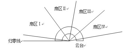 當(dāng)需要進(jìn)行無人值守時按下巡航按鈕,監(jiān)控系統(tǒng)即處于自動監(jiān)測狀態(tài),它會從歸零線開始,依次對四個扇區(qū)進(jìn)行巡航掃描。下圖顯示出云臺在巡航模式下的工作狀態(tài):