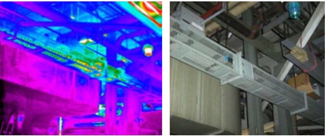 由于線纜橋架是有金屬、甚至還在橋架的內(nèi)部或外部包裹上隔熱棉,或防火材料,所以在檢測時,一般不打開橋架蓋板的條件下,需要通過橋架的表面尋找與內(nèi)部故障,即使有橋架表面超過正常表面的溫差5℃,也可能預(yù)示著非常嚴(yán)重的內(nèi)部故障。