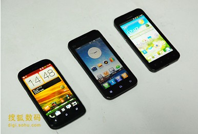從左至右依次為HTC 新渴望V(左)、小米手機(jī)(中)、華為Honor(右) (開(kāi)機(jī) |
