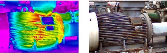電機(jī)是生產(chǎn)的重要設(shè)備,僅在美國(guó)就運(yùn)轉(zhuǎn)著4000萬(wàn)臺(tái)電機(jī),若電機(jī)超過(guò)額定溫度,那么電機(jī)的溫度每升高10℃,則電機(jī)的壽命將縮短一半。使用紅外熱像儀對(duì)電機(jī)進(jìn)行檢測(cè)是保證正常生產(chǎn)系統(tǒng)運(yùn)行的重要措施。