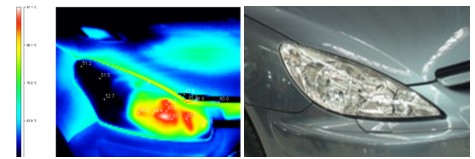 汽車工程師可以利用紅外熱像儀快速、方便的獲取車燈在使用的過(guò)程中,車燈的溫度分布,溫度變化等二維紅外圖像,在此基礎(chǔ)上,從而可以完善和優(yōu)化汽車前車燈的設(shè)計(jì)。