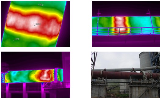 回轉(zhuǎn)窯是水泥熟料煅燒的關(guān)鍵工藝設(shè)備,而窯襯又是回轉(zhuǎn)窯生產(chǎn)中優(yōu)質(zhì)、高產(chǎn)、低消耗和長期安全運(yùn)轉(zhuǎn)的關(guān)鍵因素,溫度過高,熱振蕩過大會嚴(yán)重?fù)p壞窯襯和窯胴體, 嚴(yán)重時會造成窯壁燒穿,導(dǎo)致停產(chǎn)事故;紅外熱像儀可以及時發(fā)現(xiàn)窯襯損壞狀況,避免損失。