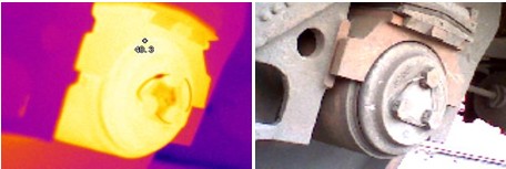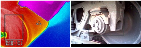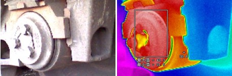 機(jī)車輪軸測溫是鐵路系統(tǒng)中規(guī)定必須進(jìn)行溫度檢測的一個(gè)項(xiàng)目,當(dāng)輪軸的溫度高于環(huán)境溫度40℃以上的,就必須立即更換,否則會(huì)損害軸承強(qiáng)度及剎車片性能,紅外熱像儀可以及時(shí)、準(zhǔn)確地發(fā)現(xiàn)輪軸過熱隱患,避免行車事故。