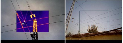 2 若在自動(dòng)模式下熱圖不清晰,可先使用自動(dòng)模式測(cè)量接觸網(wǎng)的溫度范圍;然后手動(dòng)設(shè)置水平及跨度,將溫度范圍設(shè)置在最小,并包含有先前測(cè)量的溫度范圍(各款儀器最小溫度范圍不同)。