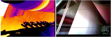 一般來說,滾筒干燥器的表面比較光亮,反射率高而發(fā)射率低;或是其外部覆蓋著紙張或厚氈毯,直接用熱像儀檢測滾筒比較困難。建議使用熱像儀拍攝紙張,通過檢測紙張的溫度均勻性來間接檢測滾筒的溫度均勻性。如果滾筒內部加熱不均勻或是表面有缺陷,會使紙張產生局部缺陷,從而使我們通過檢測紙張的缺陷來檢測滾筒的質量。