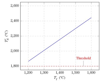 圖10顯示,熔渣的溫度補償基于鐵水的溫度TI通過其發(fā)射率T’s計算,使用1200 ? C 到 1600 ? C 范圍的TI值計算T’s值,該溫度范圍來自鐵水溫度。