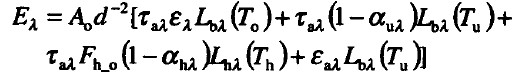 根據(jù)紅外熱像儀的測(cè)溫原理,在實(shí)際測(cè)量時(shí),熱像儀接收到的有效輻射包括3部分: 目標(biāo)自身輻射、環(huán)境反射輻射和大氣輻射。被測(cè)物體表面的輻射亮度為: