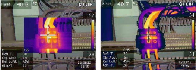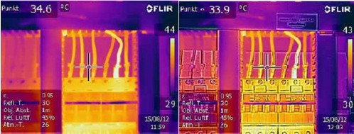 EGI不僅提供熱服務(wù),而且還制造自己的配電板和電氣柜。此外,EGI使用熱像儀監(jiān)控其電氣柜的質(zhì)量,并為客戶記錄下質(zhì)量監(jiān)控過(guò)程。所有構(gòu)件都安裝了線纜,每個(gè)螺絲觸點(diǎn)必須緊在一個(gè)特定的扭矩上。使用熱像儀后,再調(diào)試系統(tǒng)以檢測(cè)是否熱量過(guò)高,隨之立即糾正問(wèn)題。
