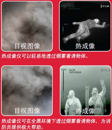 HF系列所有型號均可以在煙霧彌漫的房間里透過煙霧尋找人員。專業(yè)型均配備“融合”彩色調(diào)色板。