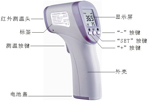 該測(cè)溫儀是專(zhuān)為無(wú)需接觸人體而設(shè)計(jì)的,測(cè)量人體身體額頭及體表溫度的體溫計(jì)。